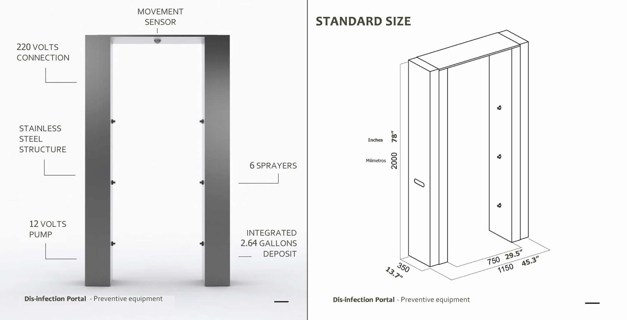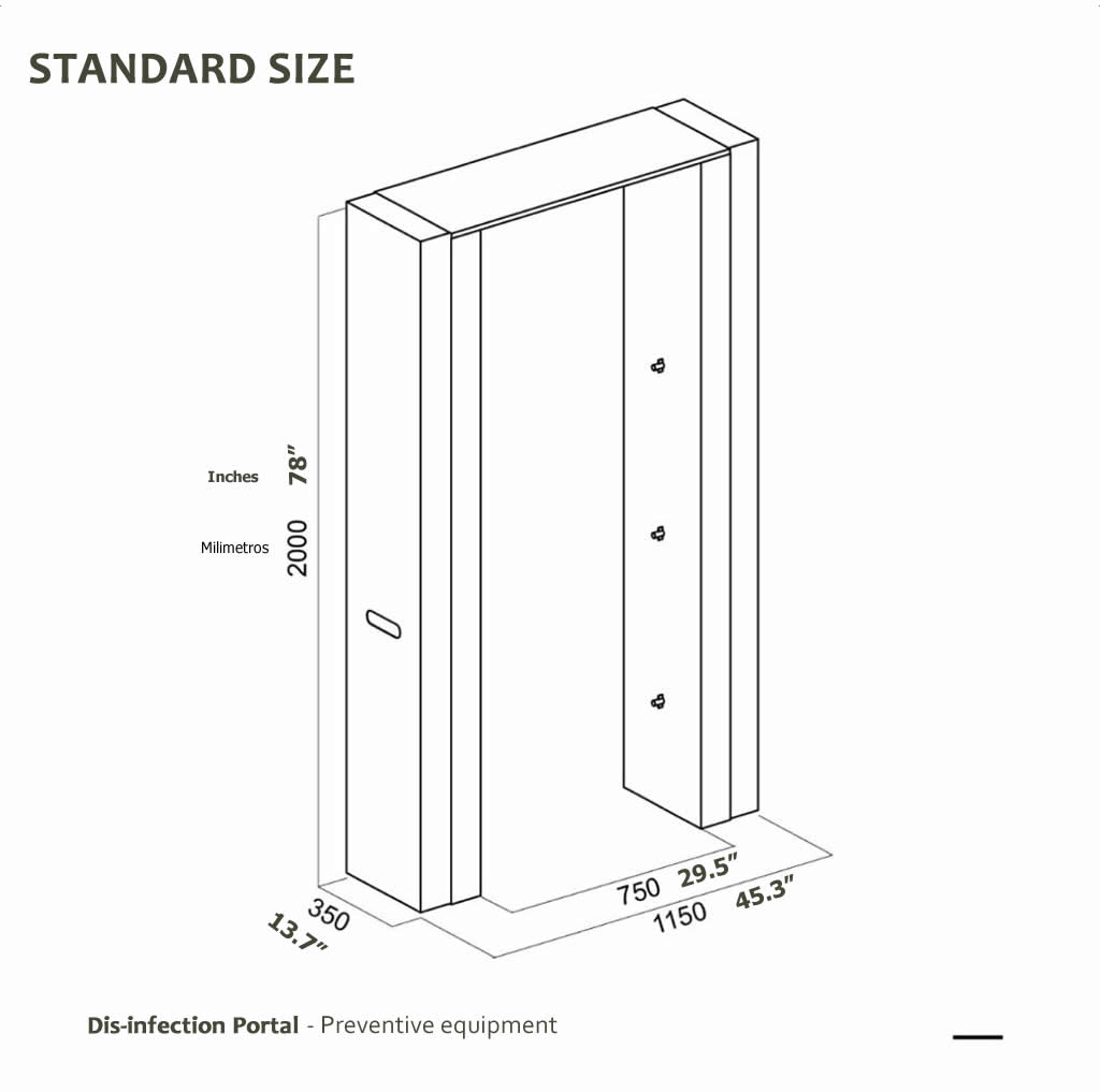 Disinfectant PortalBody Disinfectant Portal (Door) that kills 99.9% of Viruses. This Portal helps you to minimize all external threats of Viruses for your office and/or workplace. This Portal was designed to apply 300 sprays to each person who crosses the door. This solution is applicable on children, pregnant women, and elderly people. Our formula is designed to quickly disinfect as it touches the skin of a person. GEA products are Gentle on the Skin, Non-flammable, Non-irritating.